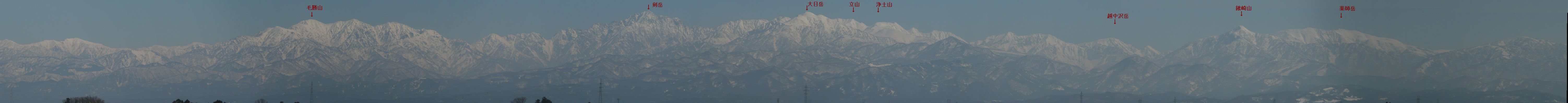富山市郊外:常願寺川 河畔からの立山連峰ハ゜ノラマ写真です