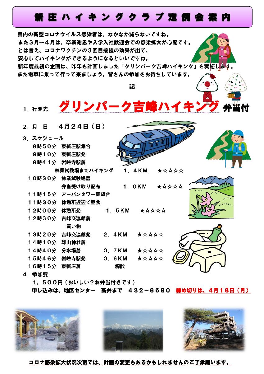 【4/24(日)】 グリンパーク吉峰ハイキング